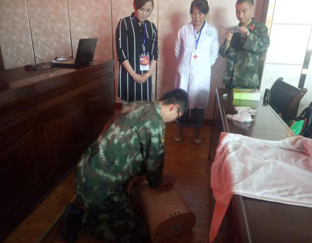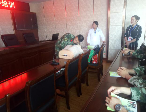 本次培训主要针对部队平时训练任务重、时间紧,担负着维护全县社会安全和自然灾害、突发事件的紧急救援任务的特点,让官兵熟练掌握基本的救护知识和技能,更好地在灾难发生时能够救助他人,保护自己,从容面对,临危不乱,圆满完成救援任务。县人民医院内科主任、副主任医师应春兰老师在培训时,强调第一时间正确判断的重要性,重点对心肺复苏和创伤救护的止血、包扎、固定等技能进行讲解和演示,让官兵们亲自操作,师生互动,手把手进行指导、纠错,最后和官兵一起总结出正确的处置办法和步骤。同时,县红十字会马琼副会长讲解了红十字运动基本知识。官兵们学习热情高,气氛活跃,效果明显。