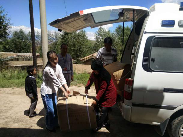 在调研过程中,深入德恒隆乡列村、昂思多镇拉昂村、査甫乡查一村项目实施点,实地查看饮用水源、道路硬化区、道路安全减速带等硬件投入使用情况、设施维护情况。并在项目点发放项目宣传画册、无锡市红十字会捐赠的20箱衣物等物资,为三个项目村村民去了温暖和关怀。