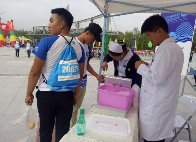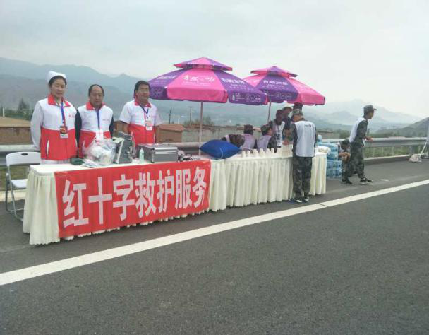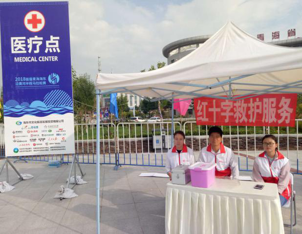 首届青海沿黄河马拉松(半程)赛以“弘扬黄河文化,绽放海东风情”为宗旨,倡导绿色健康理念,努力打造高品质国际马拉松城市品牌。比赛设置了半程马拉松赛(20.0975公里)和“迷你”马拉松欢乐跑(约5公里)2个项目。红十字救护点分别设在新区广场和半程马拉松赛段的10公里处,服务“迷你”马拉松的参赛队员和半程马拉松队员。为做好保障工作,让马拉松赛更安全、更健康,县红十字会做足了准备工作。从确定比赛开始,县红十字会就积极联系大赛组委会,加入大赛医疗服务队伍。比赛开始前(25日)对参与医疗救护的医务人员和红十字会志愿者进行了心肺复苏、包扎、搬运和除颤仪规范使用等基本技能的培训。比赛当日工作人员和红十字志愿者抵达赛道各自服务点,携带内含绷带、纱布、云南白药等运动员常用药品的急救包,为参赛选手保驾护航。工作人员坚守岗位,时刻关注赛道,关注选手,及时发现并冷静处置险情,顺利完成了预定的各项应急保障任务。