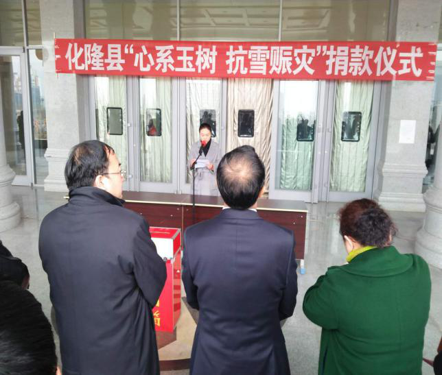 3月7日上午,化隆县举行全县“心系玉树 抗雪赈灾”捐款仪式,刘建昱、马占奎、马东升等县领导参加捐款仪式,副县长敏喜梅主持捐款仪式。